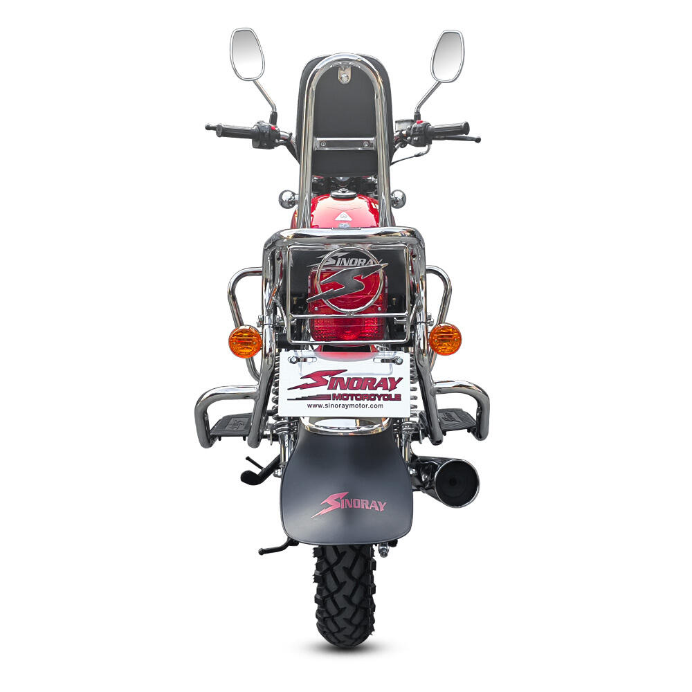 ● Stabile Steuerung, Sicherheitsupgrade: Vorderrad 2.75-18 und Hinterrad 110/90-16 Breitreifendesign, mit 12-Speichen-Aluminiumräder in mattschwarz mit rotem Felgenrand, hohe Griffigkeit; Kombination aus Scheibenbremse vorne und Trommelbremse hinten, sensible und zuverlässige Bremsreaktion; hydraulische Verbundstoßdämpfer vorne mit GN-Sleeve und hinten mit Fischkopf-Feder, filtern Unebenheiten effektiv heraus und sorgen für eine gleichmäßigere Fahrt auf anspruchsvollen Straßen; 750 mm niedrige Sitzhöhe + 160 mm hohe Bodenfreiheit, flexible Steuerung und hervorragende Geländegängigkeit.