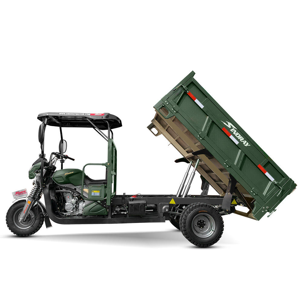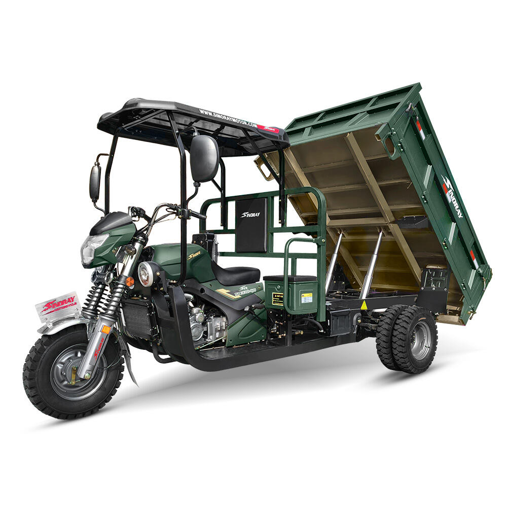 Heavy-duty cargo tricycle, backed by high-end production equipment and meticulous craftsmanship.Equipped with a dual-cylinder hydraulic dump function, reinforced shock absorption system, and 2.0-type patterned steel plate cargo bed, it delivers greater stability and durability!Powered by the robust 330CC water-cooled mid-shaft engine, it boasts strong performance and can easily tackle all kinds of complex and rugged mountain terrain!